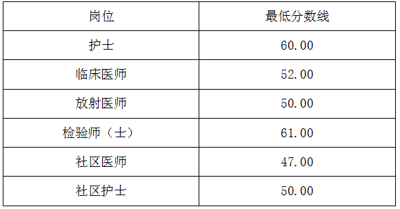筆試成績最低分?jǐn)?shù)線如下:
