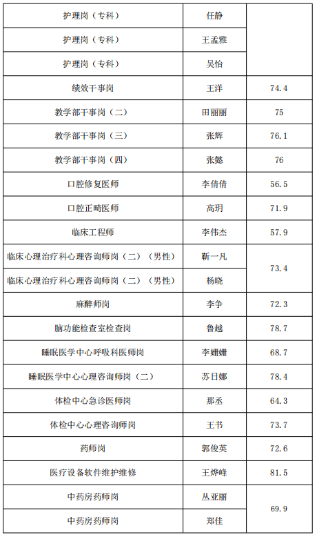 內(nèi)蒙古自治區(qū)第三醫(yī)院(精神衛(wèi)生中心)2021年度公開招聘合同制工作人員考試進入體檢和考察范圍人員公示