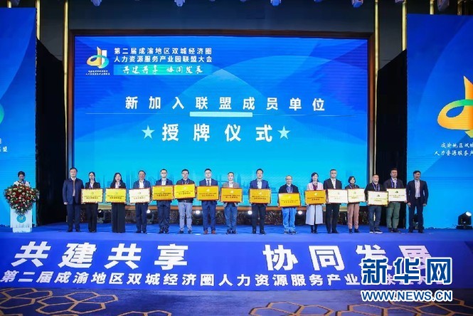 第二屆成渝地區(qū)雙城經(jīng)濟(jì)圈人力資源服務(wù)產(chǎn)業(yè)園聯(lián)盟大會(huì)授牌儀式。新華網(wǎng)發(fā)(重慶市人力社保局供圖)